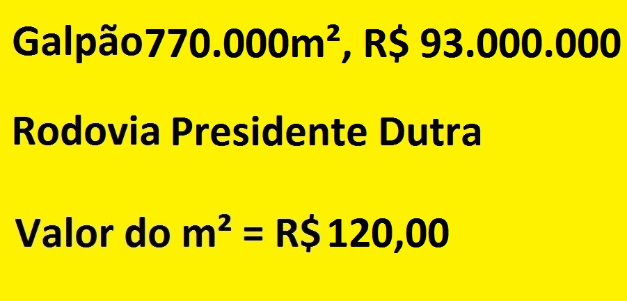 São 770.000m² de área livre murada. Rodovia Presidente Dutra.